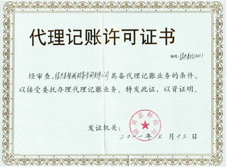 代理记帐许可证书