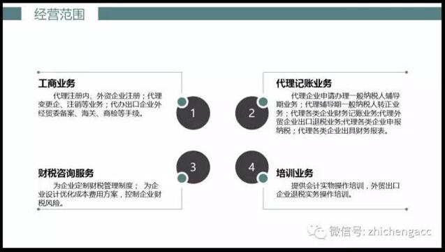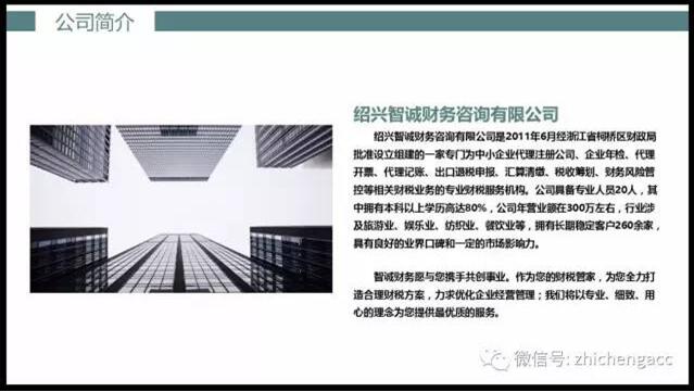 功能介绍 www.zhichengacc.com 专业办理公司注册 代理记账 出口退税申报 审计 所得税汇算清缴 www.zhichengedu.cn 会计真账实践操作培训 联系电话:0575-89877776 18657538558