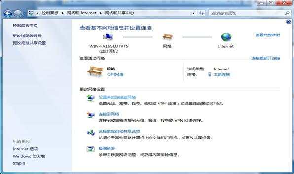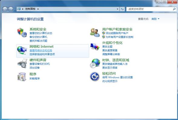 2.进入控制面板,选择网络和Internet选项中的(查看网络状态和任务);