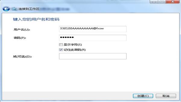 7. 键入您的VPDN用户名和密码,勾选“记住此密码”选项,点击“创建”按钮;